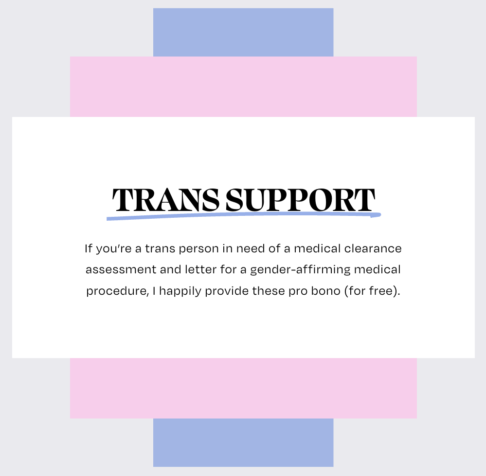 This can also mean support in building a sex life that feels more “you”: exploring kink & BDSM, grappling with asexuality, navigating personal vs. professional sex life for sex workers, “queering” sex, increasing capacity for vulnerability & intimacy during sex